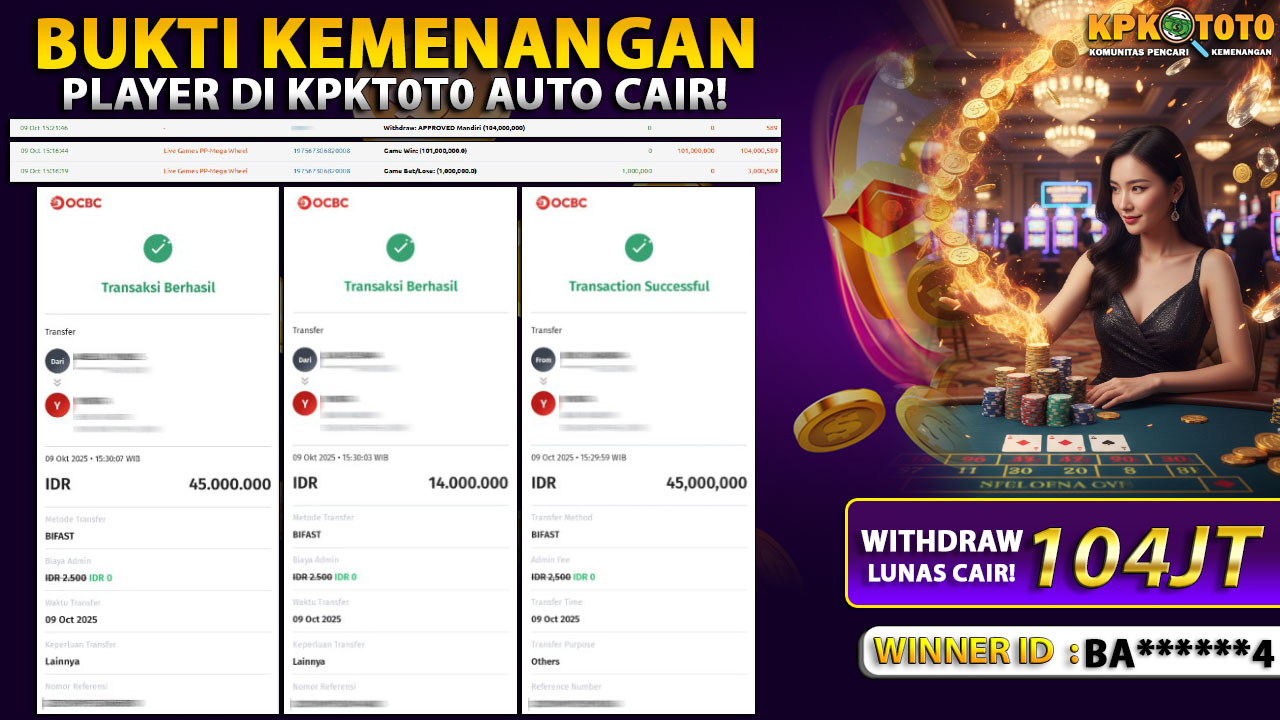 Bandar togel KPKTOTO merupakan bandar togel dan slot online yang membayar semua kemenangan member hingga lunas. Setiap pembayaran pada situs kami dilakukan dengan cara transfer ke rekening tujuan yang sudah di daftarkan pada situs togel online kami, Pembayaran hanya dapat di proses jika rekening yang di daftarkan telah valid dan dapat di transfer. Semua kemenangan member yang mendapatkan hadiah jackpot terbesar akan kami posting agar semua pemain dapat melihat bandar situs terpercaya KPKTOTO ini membayar semua kemenangan member hingga lunas. Setiap postingan yang kami posting akan kami lakukan sensor pada nomor rekening 4 digit dan nama rekening untuk menjaga privasi dan kerahasiaan member. Postingan Jackpot yang kami posting agar member atau pemain yang belum pernah bermain bisa melihat bandar togel Bukan Kaleng Kaleng Seperti KPKTOTO ini, Semua postingan jackpot yang kami posting dapat di lihat data keasliannya melalui nomor reff yang di tunjukan pada bank atau mbanking saat kita melakukan transfer.